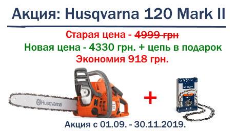 Акция на бензопилу Husqvarna 120 Mark II. Цена 4330 грн. + цепь в подарок. Экономия 918 грн.